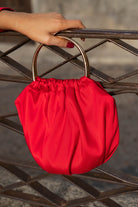 Handmade candy box made of double-sided silk mikado fabric in red. Gold handles.