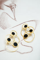 Pendientes dorados formados por varias circunferencias, detalle circurferencia en color negro. Pendientes realizados artesanalmente.