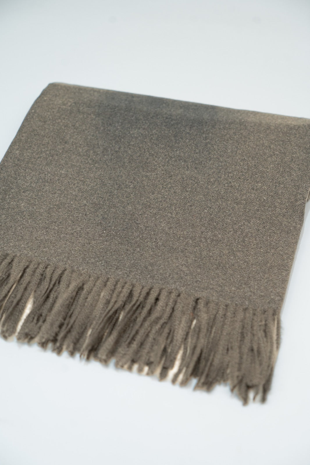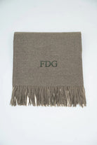 Bufanda suave, flecos en las terminaciones en color gris. Producto personalizable.