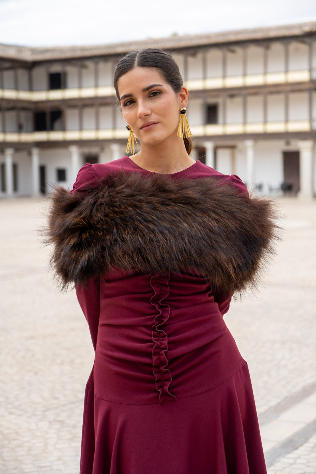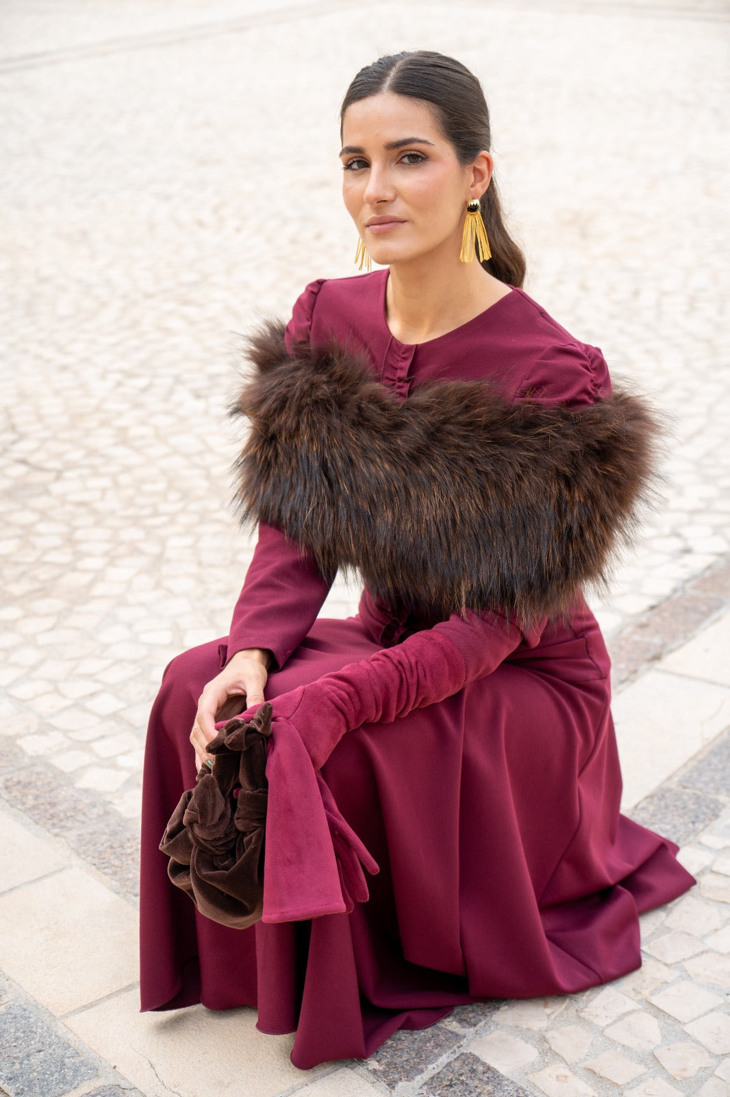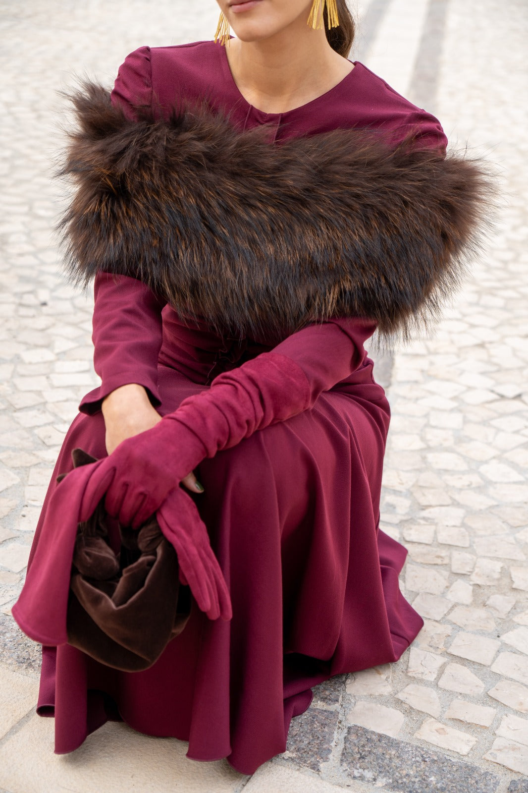 Estola pelo natural, redonda, elástica, para cubrir los brazos. En color marrón.