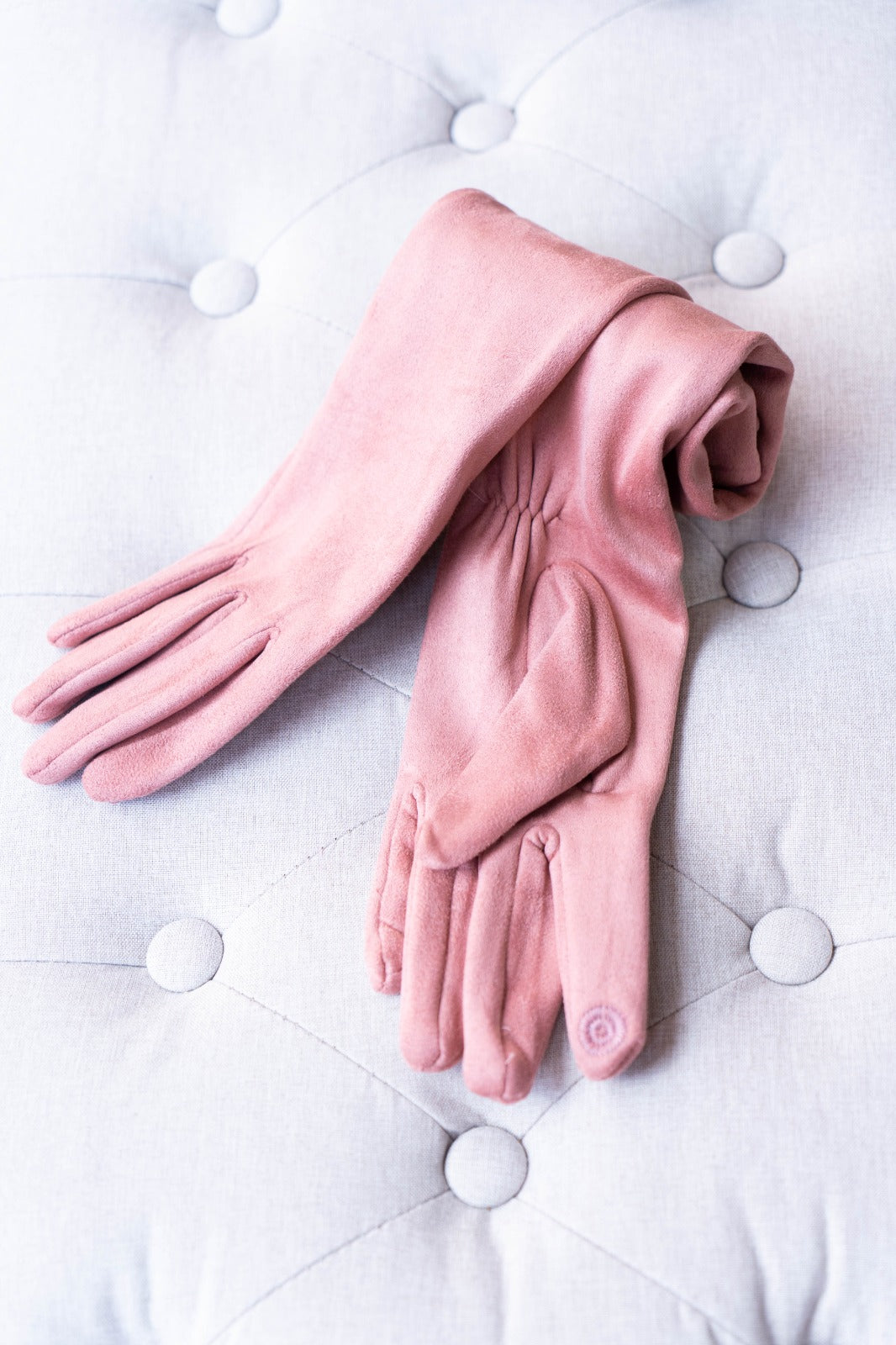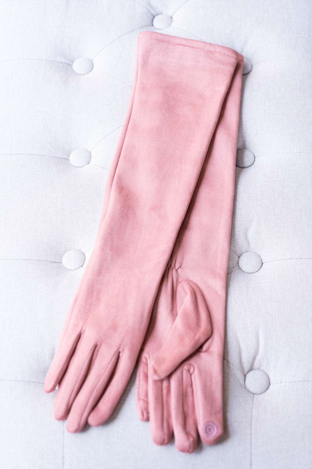 Guantes largos de antelina, elásticos se adaptan perfectamente y quedan ajustados. Color rosa.