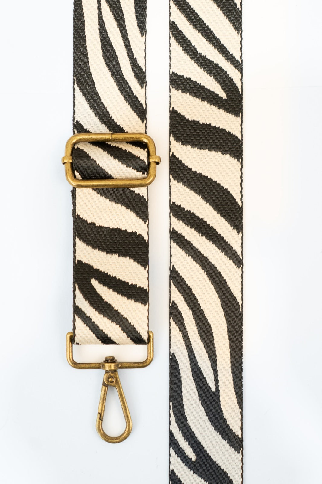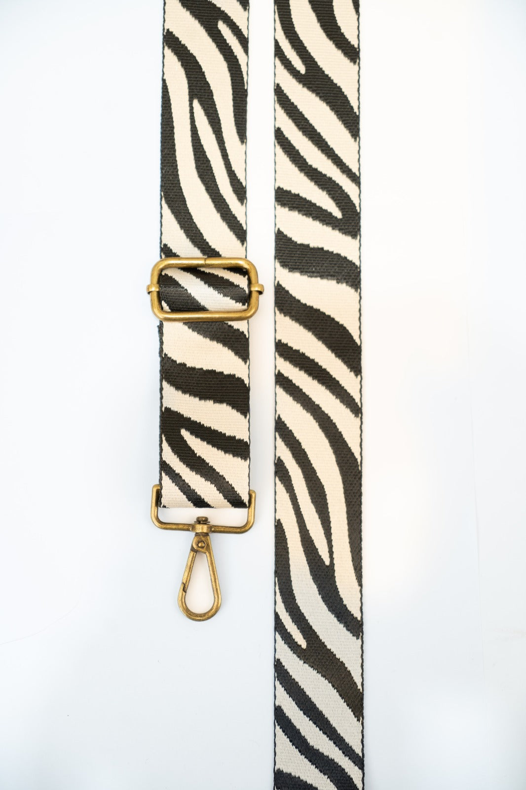 Zebra print crossbody strap with various black and white patterns. Matches the Cies and Cotal bags.