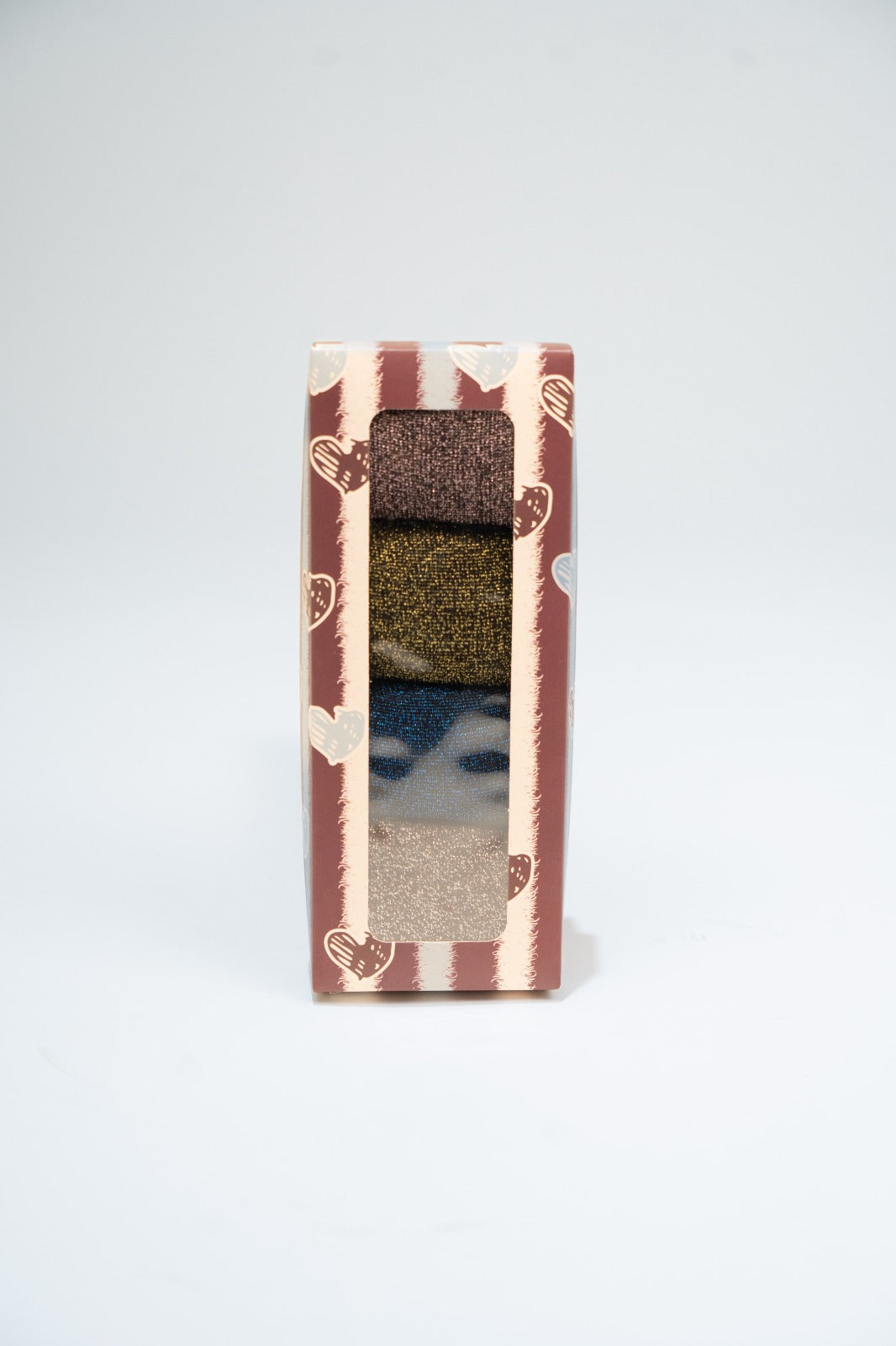 Pack of 4 plain colored socks with shiny lurex, size 34-38. Presented in a box.
